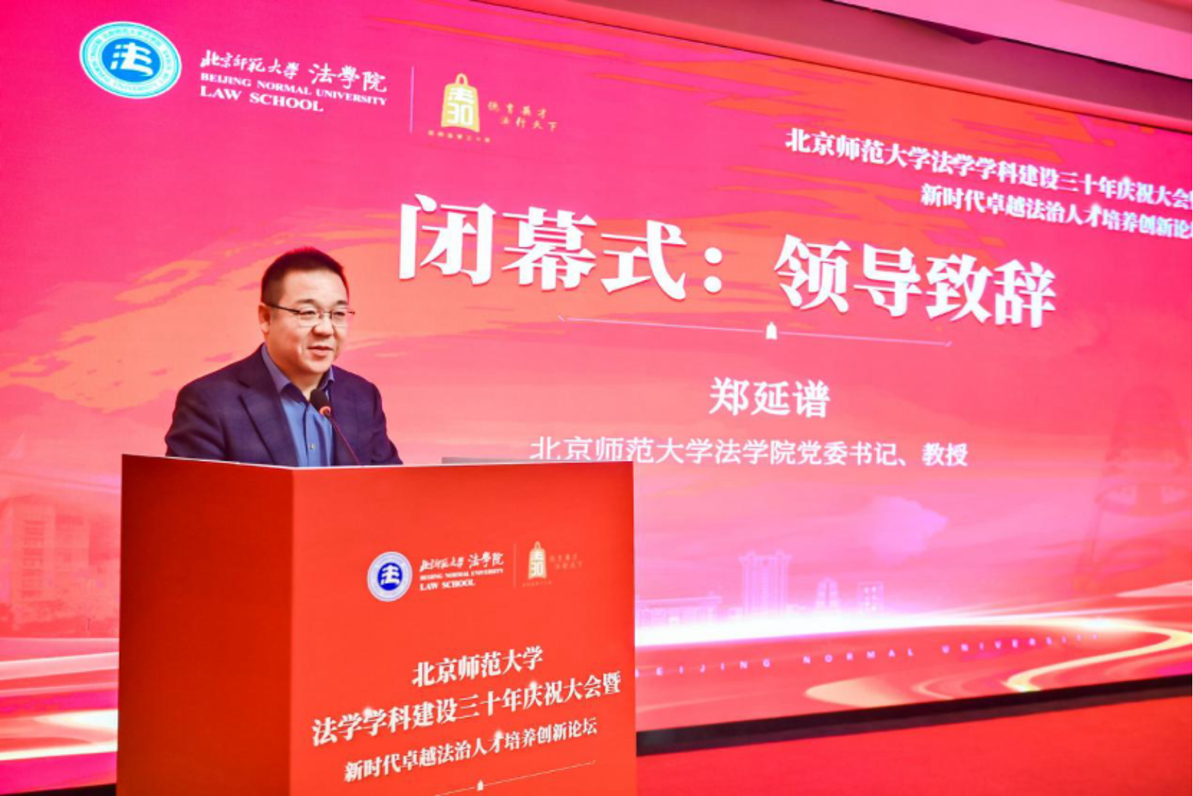 大会由少妇色情 党委书记郑延谱教授主持。他代表全院师生向到场的领导、嘉宾和校友致以热烈欢迎,并向长期关心支持北师大法学发展的前辈和教师们表示崇高敬意。郑延谱书记指出,三十年的筚路蓝缕与春华秋实,是几代法律人接续奋斗的成果,也是社会各界鼎力支持的结晶。今天的相聚既是对历史的致敬,更是新的起点。