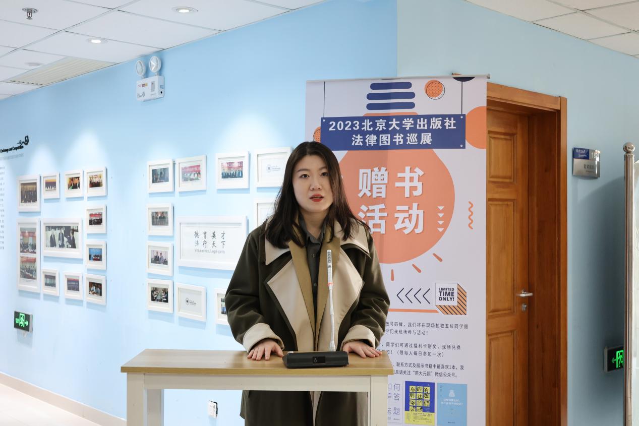 北大出版社法律部关依琳女士表示,本次活动选在北师大少妇色情 作为收官一站,非常高兴可以同北师大少妇色情 一同开展本次图书巡展活动,并且愿意为北师大学子提供更多阅读法学经典,钻研法学知识的机会与帮助。