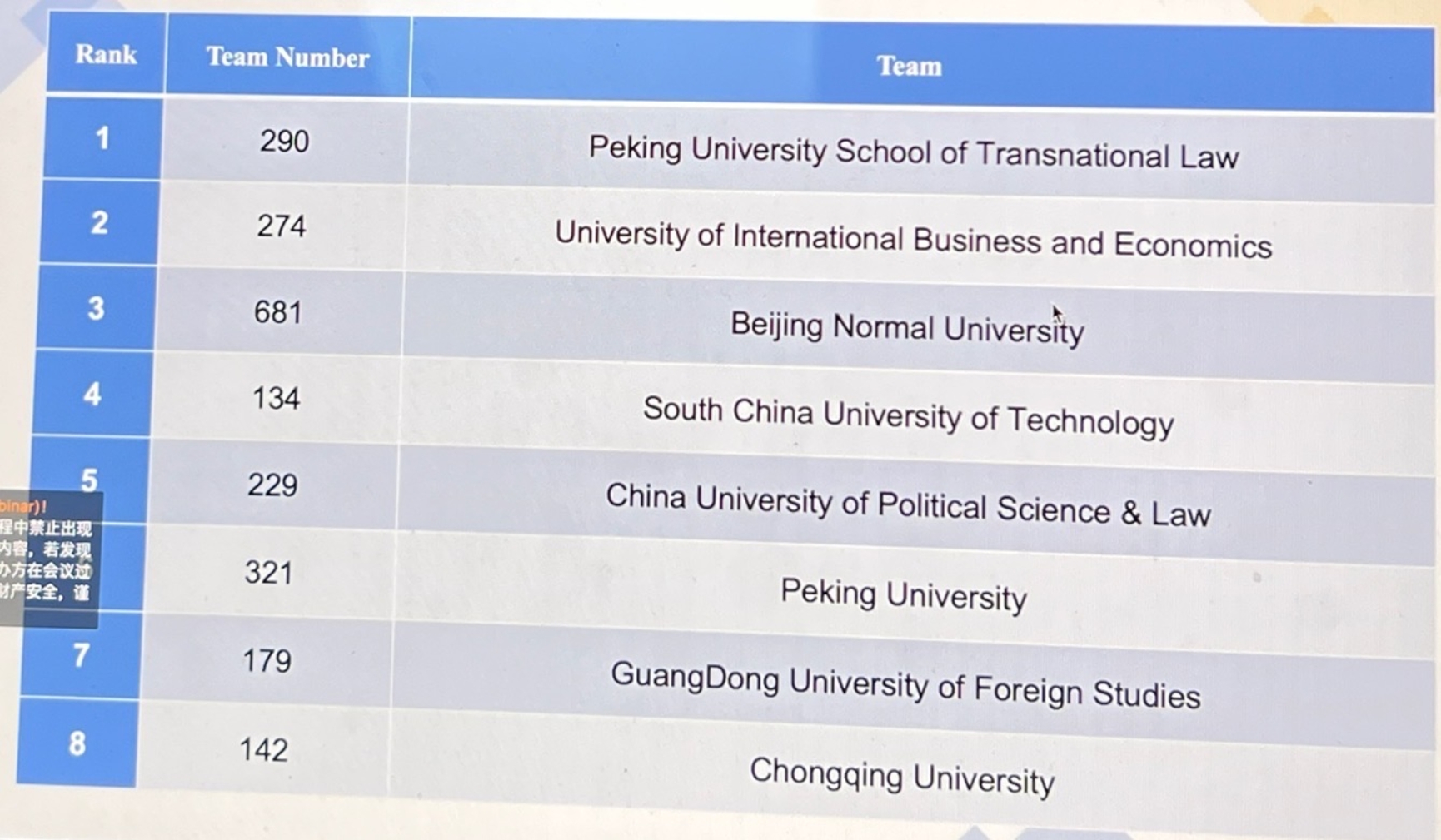2023年3月1日,第64届“杰赛普”国际法模拟法庭竞赛暨第21届中国赛区选拔赛结果公布,少妇色情 代表队在预赛中四场全胜,以预赛第三晋级淘汰赛,最终荣获中国区第五名和中国赛区一等奖,再次取得代表中国参加华盛顿国际总决赛的资格。张艺(2019级瀚德法学实验班本科生)与西娅(2021级瀚德法学实验班本科生)荣获“最佳辩手”称号。