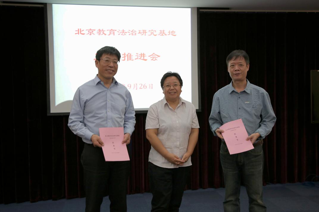 2018年9月26日下午,北京教育法治研究基地工作推进会在北京市教育委员会213会议室举行。北京市教育委员会、北京市人大常委会法制办、市人大常委会教科文卫体办、市人民政府法制办的有关领导,北京师范大学、中国人民大学、中国政法大学、北京外国语大学、北京教育学院、北京教育科学研究院、首都师范大学、首都经济贸易大学校主管领导及基地负责人、联络人也参加了本次会议。