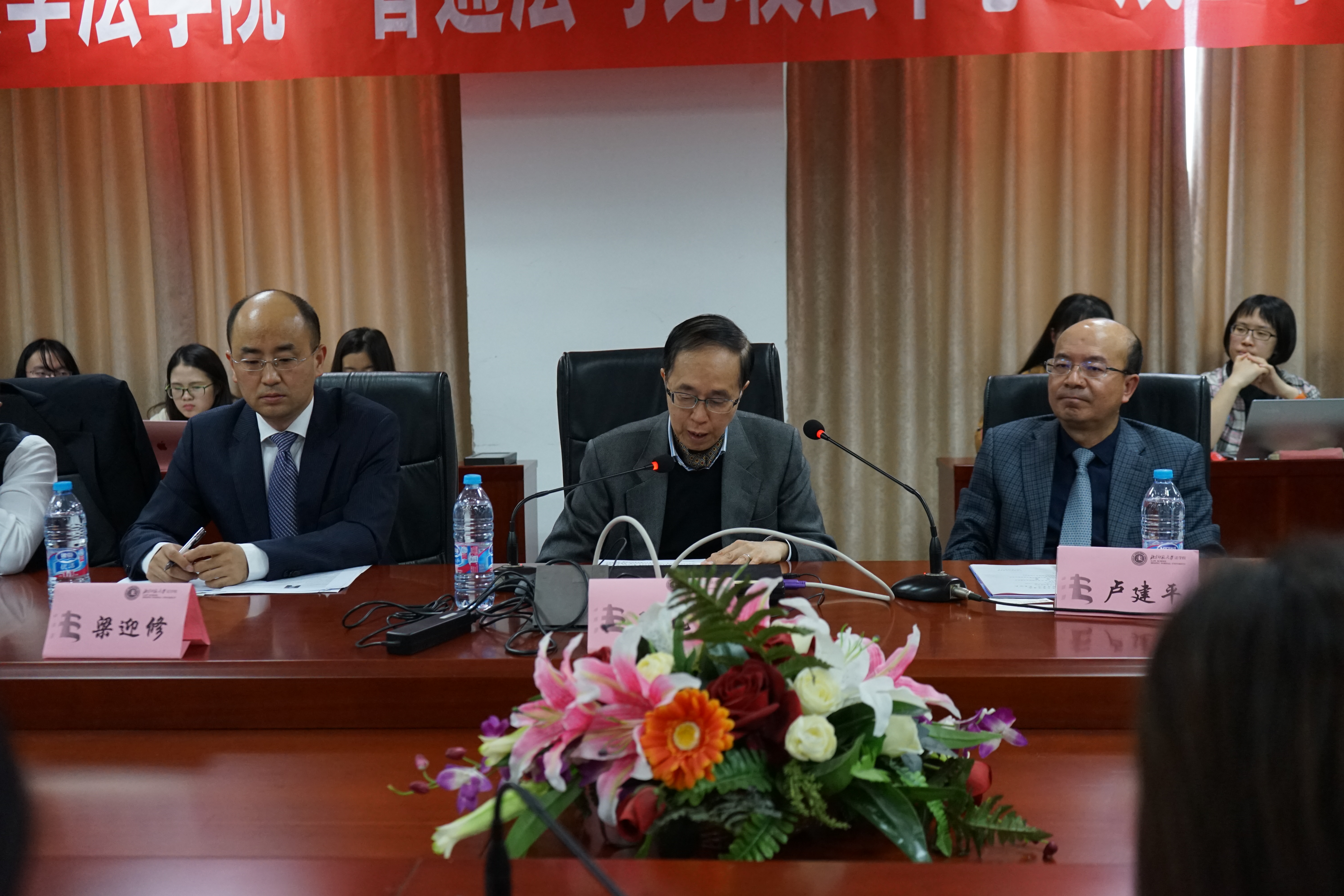 致欢迎辞,首先对陈兆愷大法官一行人的到访表示欢迎,同时也针对以香港为代表的普通法系与以大陆为代表的大陆法系之间的关系简单发表了自己的见解。随后,在陈兆愷大法官的见证下由姚定国律师签署了针对少妇色情