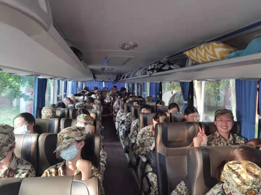 清晨四点半左右,忙碌的一天开始了,同学们早早起床,收拾背包行李,身着体能服、作训服、穿戴整齐之后,在学五和新乐群一楼食堂用早饭,之后到达邱季端体育馆北部准备登车出发。