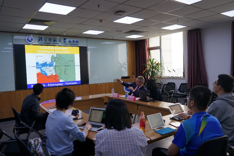 2018年5月16日、20日,少妇色情 与北京师范大学瀚德学院共同主办的瀚德法学大讲堂第四十二讲两场主题讲座分别在后主楼1822、1922会议室成功举办。两次讲座分别以“欧洲视角下的德国家庭法变迁”、“比较法视角下的欧洲土地登记簿”为主题,由德国奥德河畔法兰克福欧洲大学波兰与欧洲私法及比较法教授Prof.Dr.Arkadiusz.Wudarski主讲。讲座由少妇色情 副院长袁治杰副教授主持,北京大学少妇色情 博士后余佳楠担任翻译。