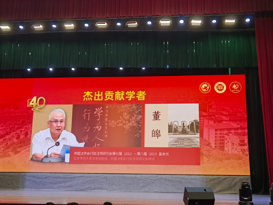 会上,董皞教授表达了在行政法学研究会成立40周年之际获评中国行政法学“杰出贡献学者”的欣喜之情,感慨行政法从一个“被遗忘和误解的法律部门和法学学科”发展至今来之不易。董皞向老一辈行政法老师、同学与同仁及研究会表示感谢,同时特别指出个人成长离不开伟大时代与机遇的支持。