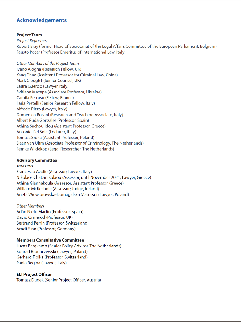 近日,我院杨超博士参加“Ecocide”研究项目组提交的研究报告获得“欧盟法律研究所”批准,“Ecocide:欧盟立法指令及决议的模范文本”报告作为欧洲社会针对环境犯罪的最新研究成果,通过环境犯罪历史发展、犯罪构成、国际法定义、国别研究、政治因素及欧盟立法建议稿,分几部分阐述了“最为严重环境犯罪”的系统研究。