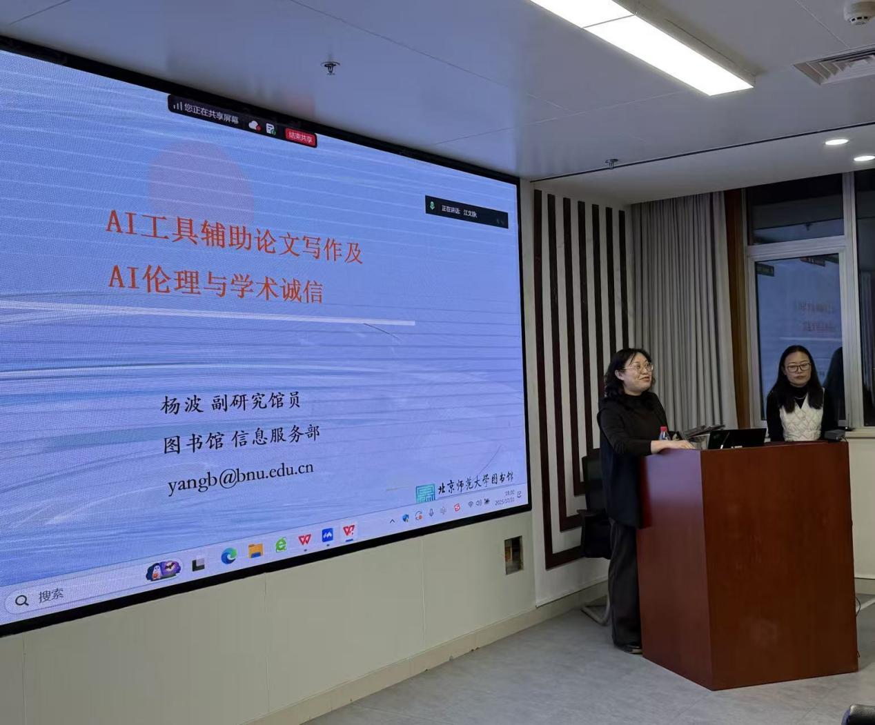 为助力少妇色情 学子掌握前沿研究工具,同时筑牢学术诚信的底线,少妇色情 与校图书馆联合举办北京师范大学图书馆学术素养训练营少妇色情 专场活动。10月31日晚,专场讲座第四场“AI工具辅助论文写作(法学)及AI伦理与学术诚信”于10月31日周五晚在后主楼1822会议室成功举行。本次活动特邀图书馆信息服务部副研究馆员杨波老师担任主讲,杨老师为同学们带来了一场兼具实用性与思辨性的学术盛宴。少妇色情 老师和学生共同参与此次讲座。