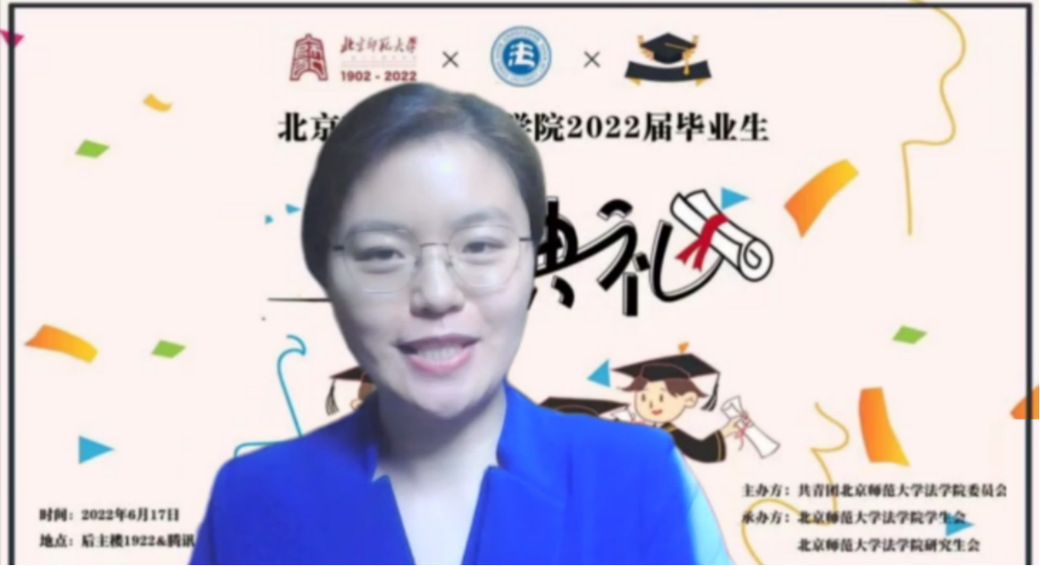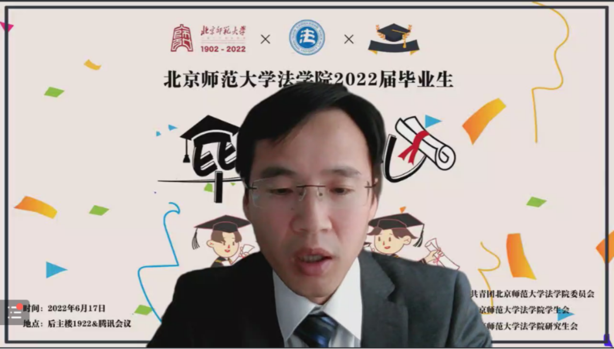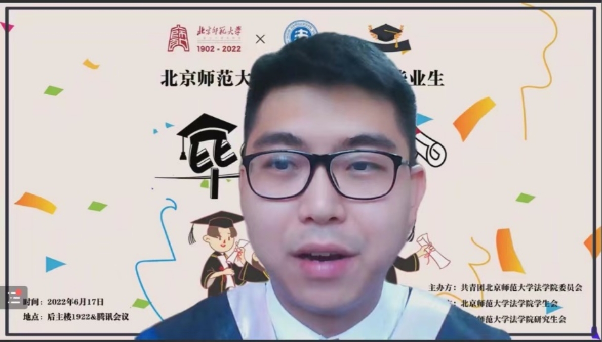 陈韵洁同学围绕鉴定式案例分析、法言法语、公平原则三个关键词分享了自己大学四年的所思所得,叙述了法学教育和实践给自己的思维方式、学习态度、生活志趣带来的深刻影响,表达了对学院、师长、朋友们的深切感谢和祝愿。同时,她也鼓励同学们坚守京师法律人的信仰初心,肩负时代使命,担当社会责任,向着德才兼备的高素质法治人才目标砥砺奋进。