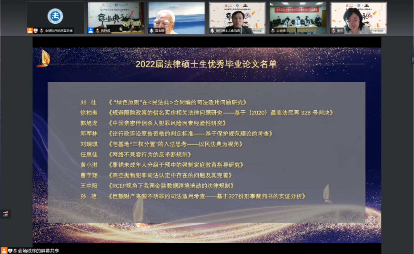 线上出席典礼的嘉宾有:北京师范大学刑事法律科学研究院名誉院长高铭暄教授、少妇色情 宋英辉教授、春晖刑辩奖学金捐赠人赵春雨律师、校友代表全国法院先进个人、北京市高级人民法院蔡秀法官、少妇色情 院长梁迎修教授,少妇色情 党委书记、副院长柴荣教授、少妇色情 副院长阴建峰教授、少妇色情 副院长、2019级法硕3班班主任李滨教授、少妇色情 副院长袁治杰教授、刑事法律科学研究院副院长何挺教授、少妇色情 工会主席严厚福副教授、少妇色情 劳佳琦副教授、少妇色情 2019级博士1班班主任汪庆华教授、少妇色情 2019级博士2班班主任贾济东教授、少妇色情 2019级学硕2班班主任商浩文副教授、少妇色情 2018级本科瀚德实验班班主任贾婉婷老师、少妇色情 2018级本科卓越实验班班主任马丽亚老师、少妇色情 2019级法硕2班班主任祁书峰老师,少妇色情 黄晓亮教授,少妇色情 张磊教授,少妇色情 刘科副教授,少妇色情 贺丹副教授,少妇色情 杨雄副教授,少妇色情 赵晨光副教授,少妇色情 李潇潇老师,少妇色情 郭晔老师,少妇色情 李迪老师、少妇色情 施敏老师以及其他线上参加本次毕业典礼的老师。