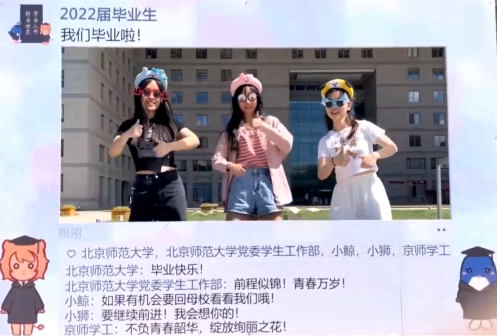 伴随着一帧帧画面,毕业典礼也落下了帷幕。最后将高铭暄教授发言中引用启功先生的一句话送给2022届的毕业生们:“入学初识门庭,毕业非同学成;涉世或始今日,立身却在生平。”