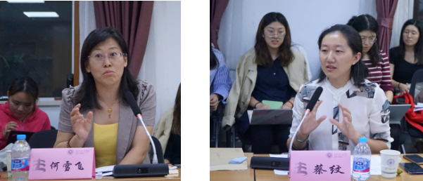 之后进入与谈环节。何雪飞处长强调了在执法中运用法律思维的重要性。何处长指出,实践中的问题需要运用能动的法律思维,不能死抠条文,要积极收集相关数据;针对书本或者法律中没有规定的实践性问题,要根据法律的概念、原则、思维去解决。同时,何处长还提出,在法学论文的写作过程中,要不断地积累,善于发现实践中的问题。蔡纹老师则通过多年研究生培养经验,向新生强调要积极与导师进行沟通,确定研究方向以及多读与专业相关的书与文章。蔡老师还建议要充分利用学校开放的课程体系、选择自己感兴趣的领域进行深入研究,并勤于写作,以此来培养和锻炼写作思维。同时,蔡老师还强调要重视论文的写作规范,特别是引述的规范。