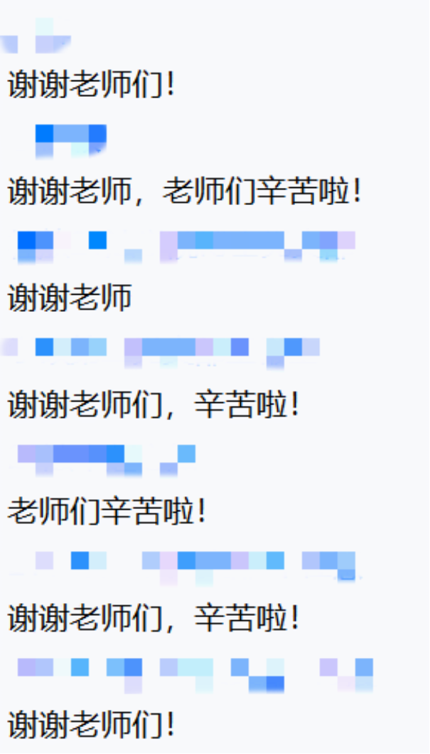 郭雅婷老师、陈轩禹老师、徐淑琳老师就学生提出的问题进行逐一解答,例如:健康宝弹窗解除问题、学生就医问题、毕业事项、公共会议室预约问题、文件递寄问题、文件盖章问题、科研项目报销问题、入党相关问题等。老师解答完毕后,同学们也纷纷表示感谢。
