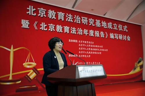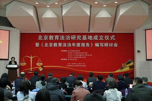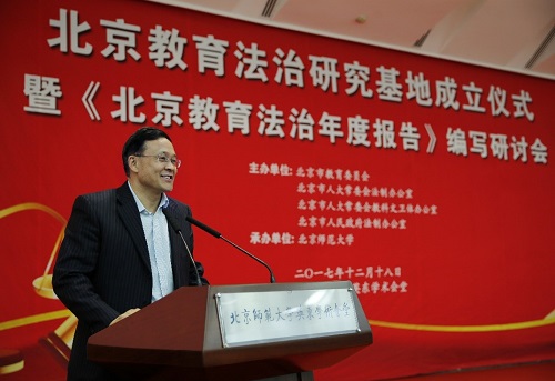 12月18日下午,北京教育法治研究基地成立仪式暨《北京教育法治年度报告》编写研讨会在北京师范大学英东学会会堂演讲厅隆重举行。教育部政策法规司王家勤巡视员出席会议并致辞。北京市教育委员会、北京市人大常委会法制办、市人大常委会教科文卫体办、市人民政府法制办的有关领导,中国人民大学、北京师范大学、中国政法大学、北京外国语大学四所高校的校方代表也参加了本次会议。