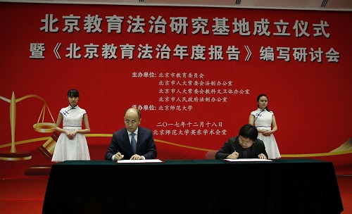 为深入贯彻落实十九大精神,加速推动北京教育高水平依法治教进程,构建立足实际、面向未来的北京教育法治综合服务与支撑体系,北京市人大常委会法制办、教科文卫办、北京市政府法制办、北京市教委四家国家机关与中国人民大学、北京师范大学、中国政法大学、北京外国语大学四所教育部直属高校合作共建北京教育法治研究基地,旨在全面推进首都依法治教的建设。