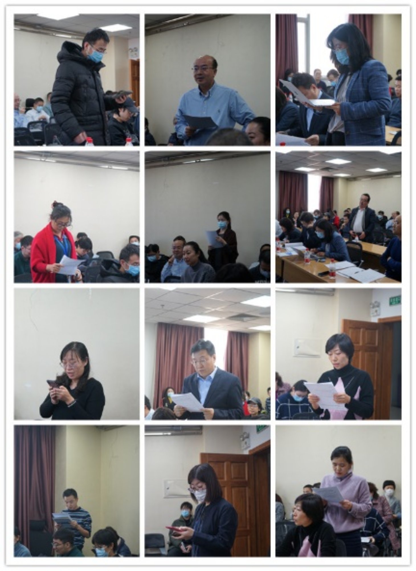 随后,述职大会正式开始。全院教师按照基础理论法学教研中心、宪法与行政法学教研中心、刑法学教研中心、民商法学教研中心、经济法与环境法学教研中心、诉讼法学教研中心、国际法学教研中心、党政办公室的顺序分别从思想政治及师德自我评价、人才培养情况、科学研究情况、社会服务情况等多方面进行述职。