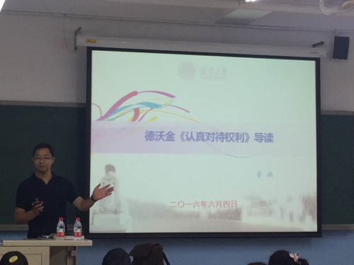 2016年6月4日,少妇色情 “法学经典文献导读”第四讲, 暨“翰苑读书会”第十四场成功举办。本次导读书目为德沃金的《认真对待权利》,担任本次导读人的是来自清华大学的鲁楠老师。鲁楠老师系清华大学少妇色情 助理教授,法学博士,美国哈佛大学少妇色情 富布莱特访问学者。主要从事比较法与法律文化,法学理论、法社会学的研究,对本次导读的德沃金先生的相关著述都有较为精神的研究。本次读书会由少妇色情 讲师、硕士生导师马剑银老师主持。