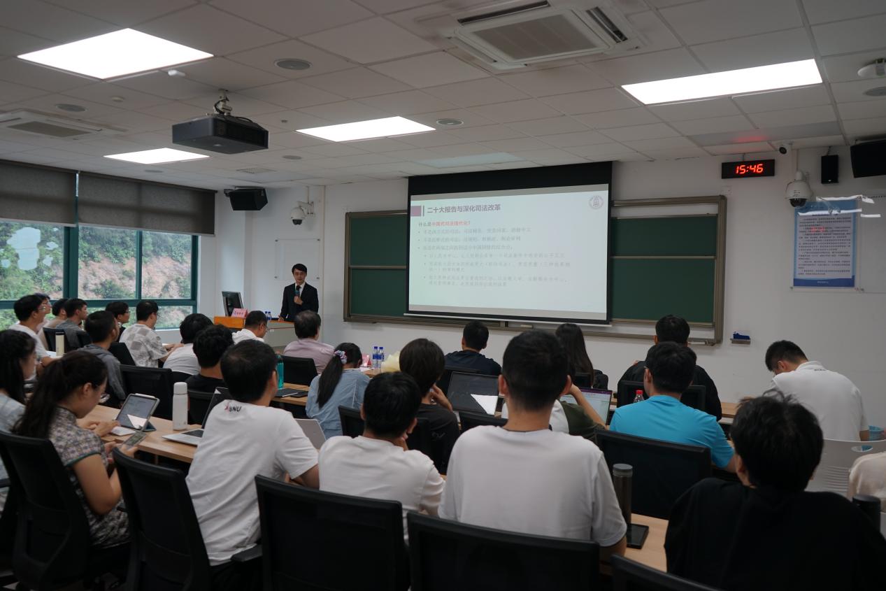 陈杭平副教授在分析了二十大报告与深化司法改革的时代背景以后,从困扰司法现代化的主要问题、深化审级职能改革、深化执行体制改革、深化诉源治理改革、深化审判管理改革五个方面展开讲座。