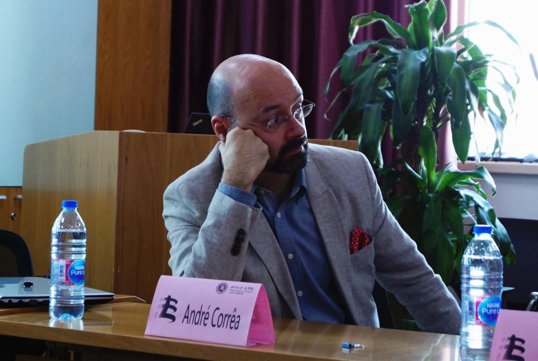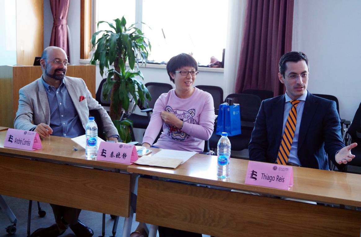 首先Pro.Dr.André Corrêa介绍了巴西的法学教育与葡萄牙法学教育的不同。巴西法学教育更加注重师生的互动,课前围绕一个法律主题研读材料,并寻找相关的法律基础,课堂上围绕这个问题展开讨论,而非教授全程讲授。