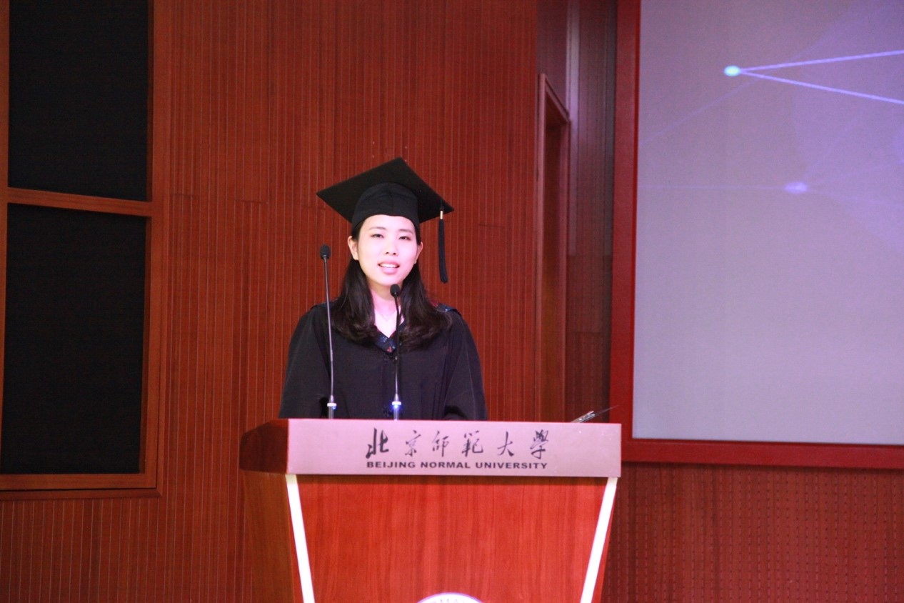 在颁奖结束后,毕业生代表舒静怡同学也进行了发言,舒静怡同学说道:在这一天,毕业的快乐和离别的伤感都在空气中弥漫,回忆也在脑海中一幕幕呈现,四年大学生活教会我很多东西,离家生活教会我独立,辩论教会我缜密思维和清晰表达,论文写作教会我理性思考,社团活动教会我识大体顾大局,这些都让我在北师大收获着成长着。大学是如此多样化,来自五湖四海的同学们各有着各的兴趣,北师大给了我们合理范围内的自由环境让我们成长,在北师大,学术气息浓厚,校园活动表现出的活泼也同样精彩。在少妇色情