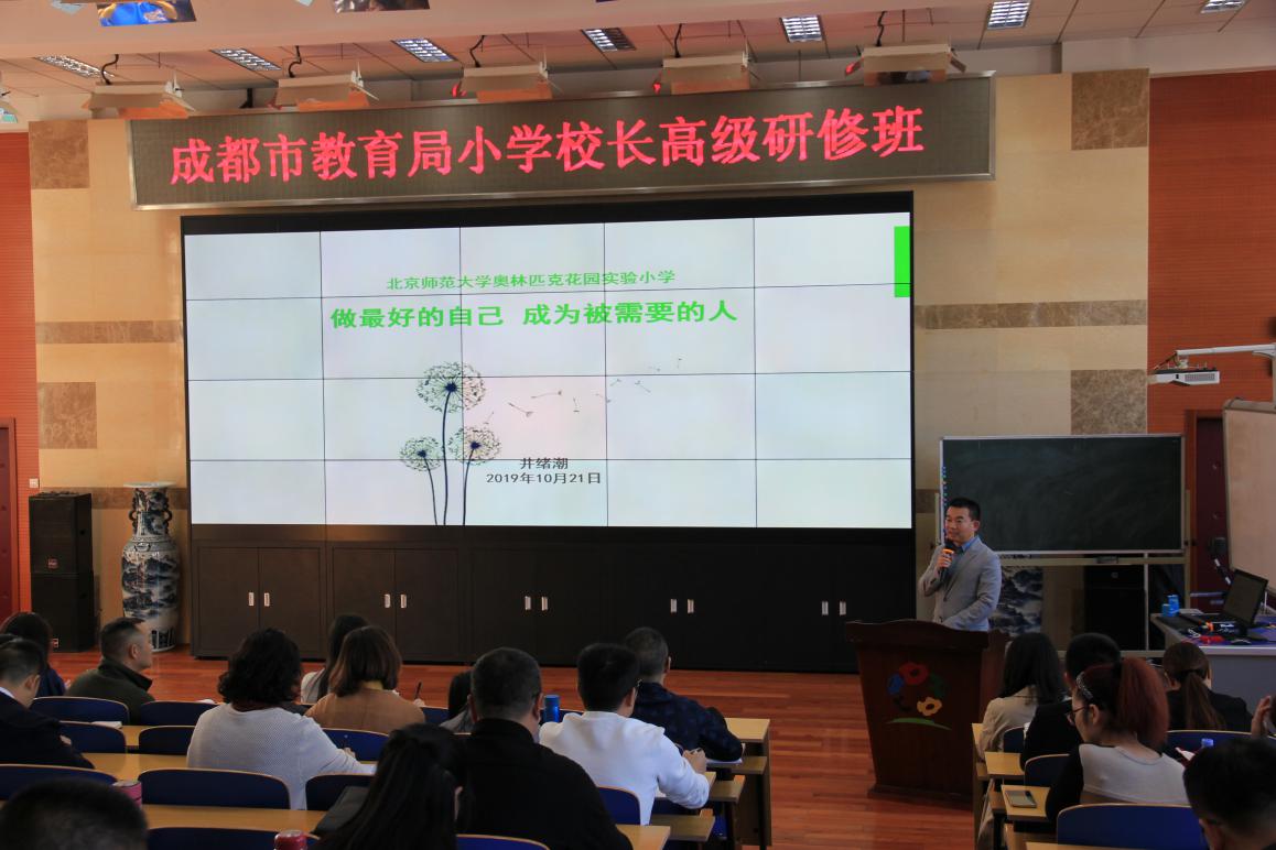 为加快建设“优教成都”,满足人民对优质教育的需求,全面提高成都市小学校长队伍整体素质和专业水平,打造一支业务素质、专业水平、思维能力强的校长队伍,我院欣然接受委托,以仰望星空心怀理想,脚踏实地践行教育为宗旨,于2019年10月16日至25日期间,承办《成都市教育局小学校长高级研修班》,学员为49位成都市小学正校长。