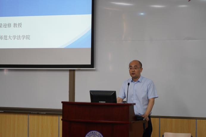 接下来,梁迎修教授做了以“法律硕士学位论文的选题与写作”为专题的讲座。讲座主要围绕论文选题、写作和学术规范三方面进行。对于选题,同学们要秉承“有意义、有创新、能驾驭”的原则,详细了解近两年的学术动态和发展方向,以小见大来选择题目。对于写作,同学们可结合自身论文选题,多查阅文献材料,做到问题往深处挖,提炼自己的独到见解和观点。对于学术规范,梁老师从论文格式、形式规范到规范学术行为方面向同学们进行了说明和讲解。