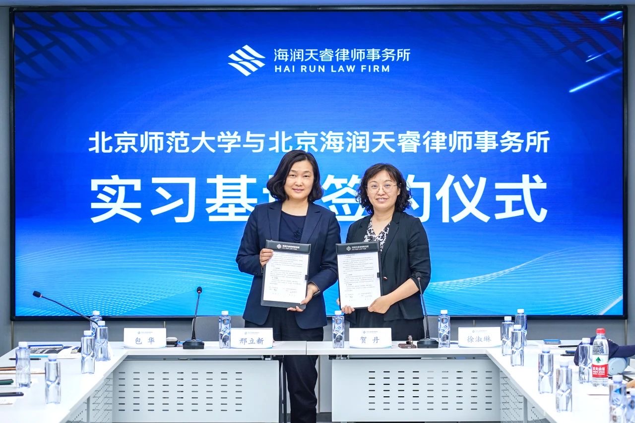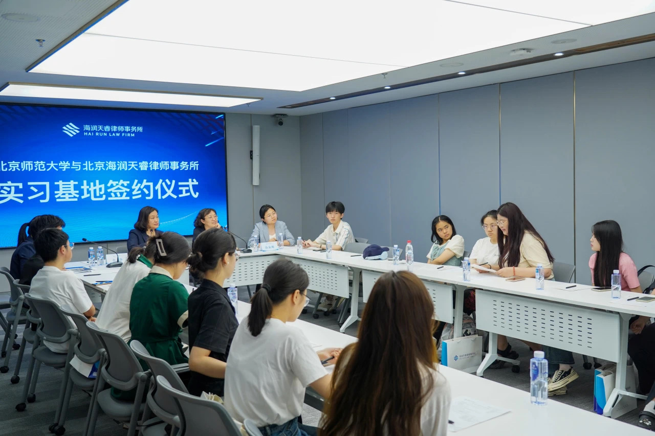 5月22日,少妇色情 与北京海润天睿律师事务所举行实习基地签约仪式。少妇色情 副院长贺丹与海润天睿高级合伙人邢立新签署了实践合作协议。双方表示,日后将在人才培养、学术交流、校所合作、学生实践等方面积极合作。辅导员徐淑琳与北师大少妇色情 40余名学子以及海润天睿高级合伙人包华,运营总监孟妮等参加签约仪式。