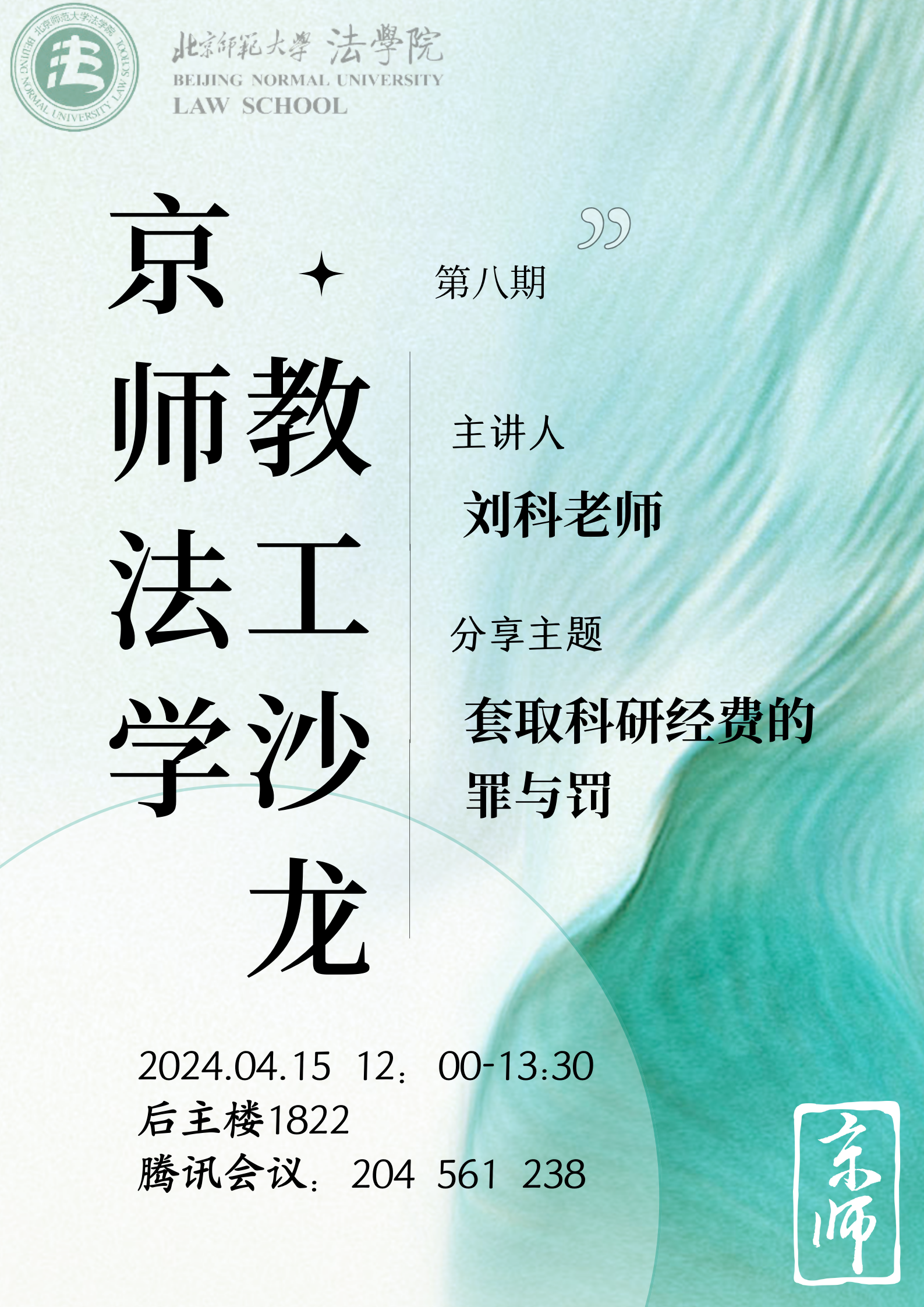 4月15日,北师大少妇色情 举行第八期“京师法学教工沙龙”,邀请刘科老师主讲《套取科研经费的罪与罚》,少妇色情 工会主席严厚福副教授主持本次沙龙。本次沙龙向全校其他兄弟院系的老师们开放,少妇色情 和其他兄弟院系四十余位老师通过线下或者线上的方式参与了此次沙龙。