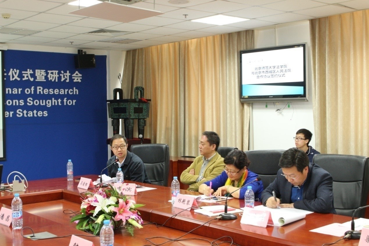 阴建峰副院长代表刑事法律科学研究院表示,希望借此合作契机与西城法院进一步加强刑事法律方面的合作;家事法研究中心主任林艳琴教授表示,希望以家事审判为切入点开展全面合作,寻求更多的合作可能性;副主任李滨教授、中心研究员马建银老师和赵晓舒老师分别就自己的研究方向与家事审判实务的结合作了阐述;与会的中心事务助理硕士研究生蒋良辰、唐林、韩潇、杨雪同学一起参与了讨论。