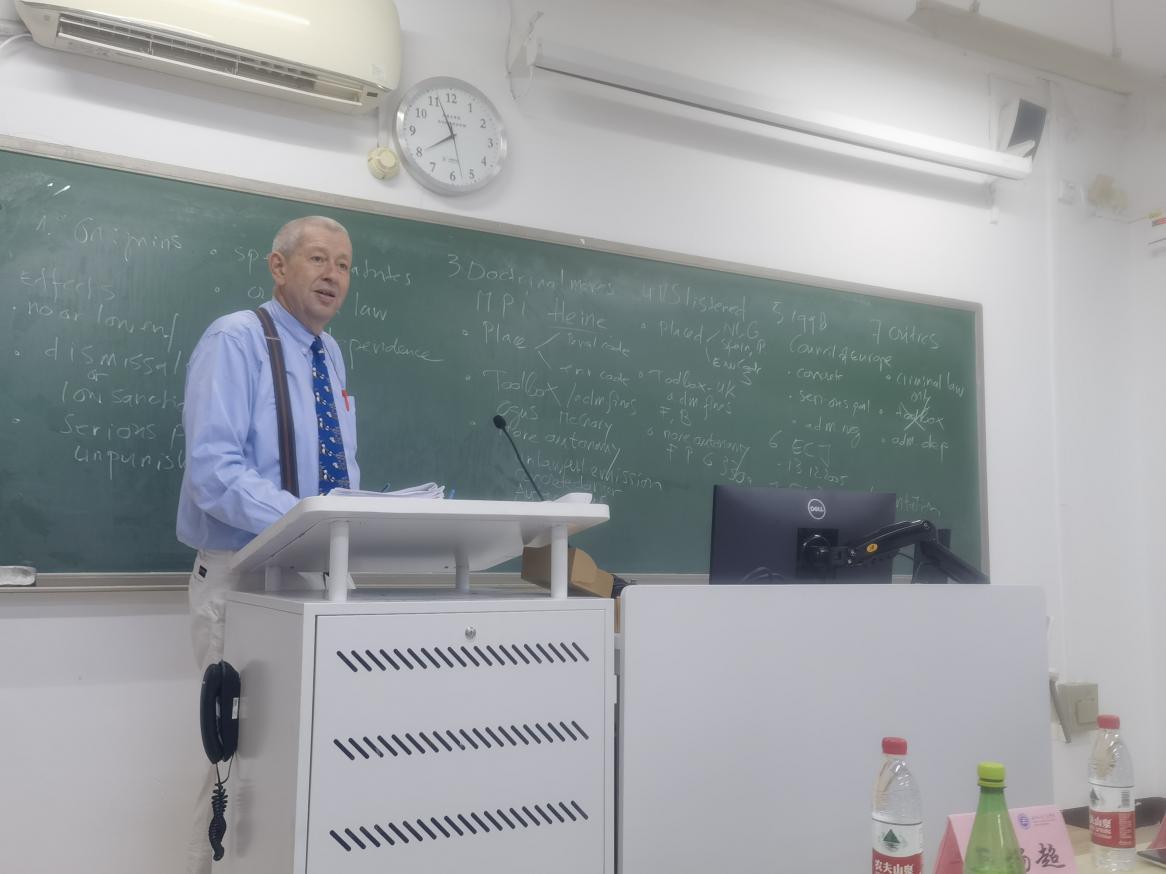 讲座伊始,Faure教授首先对中国与欧盟的环境刑法发展历程作了介绍及比较。环境犯罪通常以“违反行政法义务”为前提,中国将环境犯罪纳入刑法典的举措,在提高执法效率、保护环境公益等方面均发挥了良好的效果。随后,Faure教授对欧盟成员国环境犯罪的立法设计、规范实践效果与理论变迁展开了探讨。依本国国情与实际需求,欧盟成员国分别采取了将环境刑事规范置于刑法典与(或)环境法(典)之中的不同做法。Faure教授认为,对于环境违法行为的处罚工具应当多元化,应当将行政处罚、刑事诉讼与侵权责任等,汇集成为一个可供灵活选择的“工具箱”,以案件的具体情况为基准,选择适当的工具对环境违法行为进行规制。此后,Faure教授结合欧盟成员国环境刑法以及欧盟环境犯罪指令的立法变迁,对欧盟及各成员国环境犯罪规制存在的问题展开了深度分析。