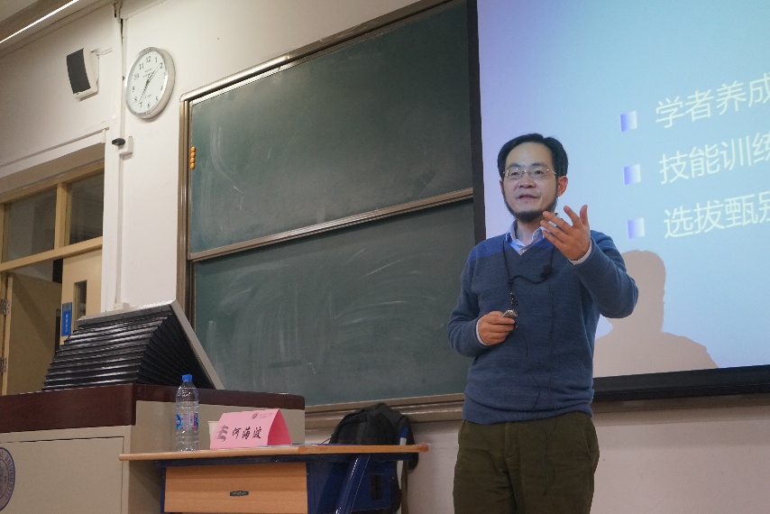 首先,何海波教授就论文写作的重要性、难点在哪里展开了针对性的论文写作分享。从论文写作的问题、论文写作的论证、论文写作的资料、论文写作的语言等四大方面及论文标题、导论、结论、引注等具体论文写作技术方面做了详略得当的介绍。何海波教授语言诙谐幽默,讲座进行过程中不乏师生的互动,主题严肃但讲座现场气氛热烈。何海波教授在讲座最后向大家分享:写作是一门技艺,要去看、去练、去琢磨;学术是一种态度,要用脑、用心、用性情,以勉励与会学生进行论文写作。
