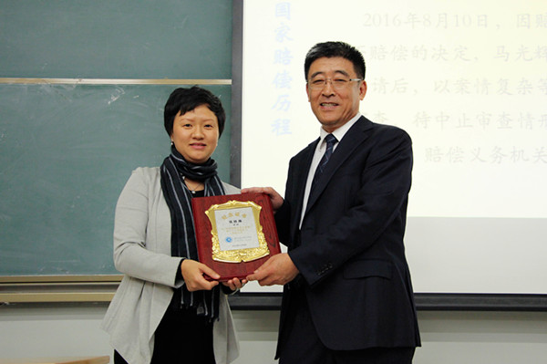 张红副院长向张铁雁律师赠送讲座纪念证书