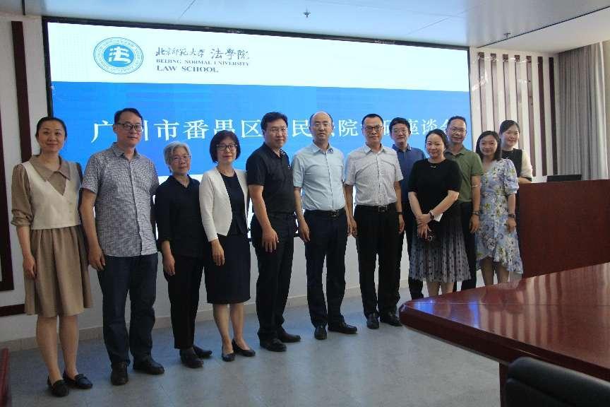 5月26日下午,广州市番禺区人民法院一行来我院调研交流并就签订合作协议内容达成一致意见。院长梁迎修、副院长阴建峰、教师代表徐胜萍教授、熊跃敏教授、郭翔副教授及唐璨副教授接待了来访嘉宾一行,副院长阴建峰主持会议。